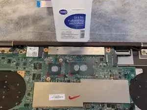 Удалите старую термопасту с радиатора, процессора и графического процессора с помощью изопропилового спирта и бумажного полотенца. Чем выше процент спирта, тем лучше. Я использовал 91%.