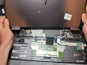 Снимите сборку дисплея, вытащив петли из корпуса.