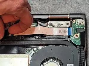 Пальцами извлеките ленточный кабель USB с материнской платы над вентилятором.