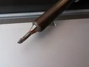 Расплавьте каждую заклёпку от зелёной метки до оранжевой. Старайтесь не отрезать их, иначе может возникнуть проблема с удержанием металлической крышки.