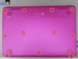 Отверните все винты на задней панели ноутбука и снимите крышку.