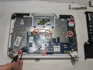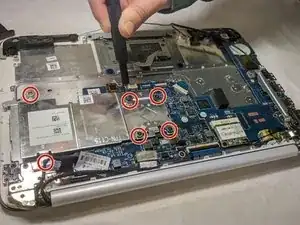 Удалите шесть винтов 3,5 мм с материнской платы с помощью отвертки JIS #00.
