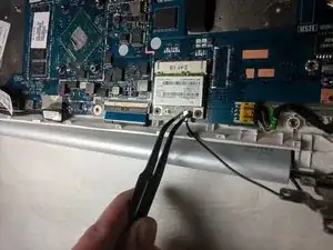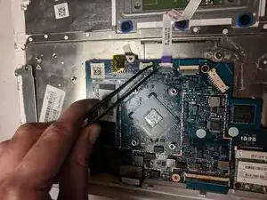 Отключите провод, присоединяющий аккумулятор к материнской плате, с помощью пинцета.