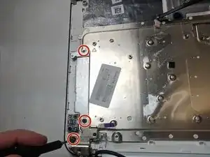 Удалите три винта 6,5 мм со второго шарнира экрана и металлического рычага с помощью отвертки JIS #00.
