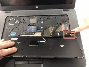 Аккуратно переверните клавиатуру и поднимите два шлейфа, чтобы отключить клавиатуру от ноутбука.