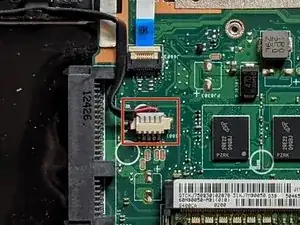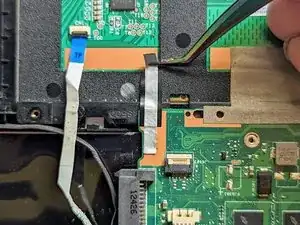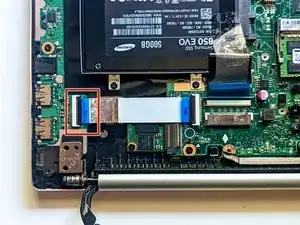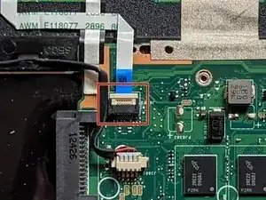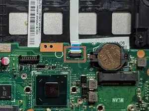 Отключите ленточный кабель клавиатуры.