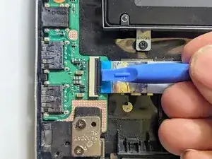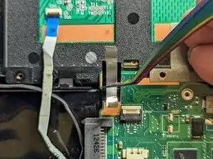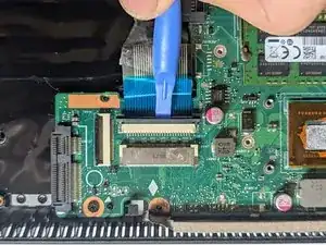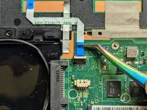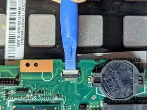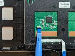 Поднимите фиксатор ленточного кабеля трекпада лопаткой.
