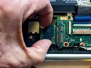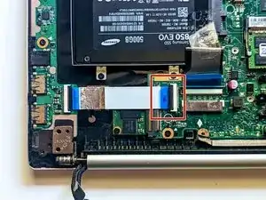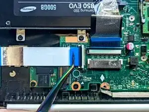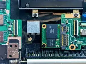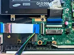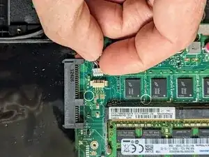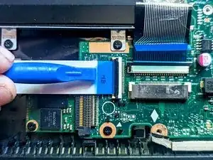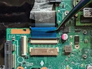 Снимите ленточный кабель, чтобы открыть доступ к SSD.