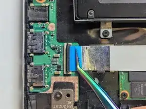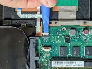 Снимите прозрачную ленту с разъёма дисплея на материнской плате.