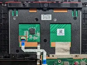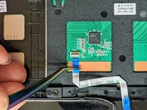 Аккуратно отлепите ленточный кабель трекпада от трекпада.