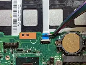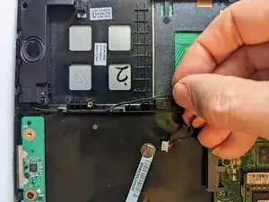Отклейте кабель трекпада от полосы проводящей ленты под ним.