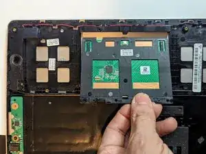 Поднимите сторону трекпада, ближайшую к противоположной стороне корпуса, и сдвиньте его от края, чтобы снять.