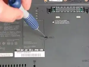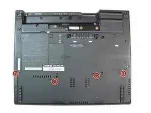 Переверните Thinkpad, чтобы была видна нижняя часть.