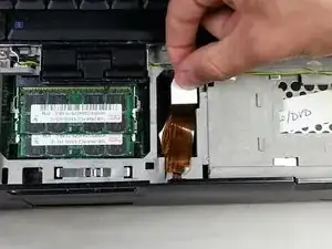 Вставьте белую защёлку, чтобы снова подключить панель тачпада.