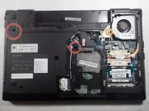 Оттяните батарею от корпуса компьютера.