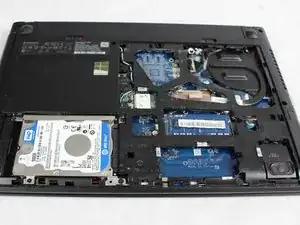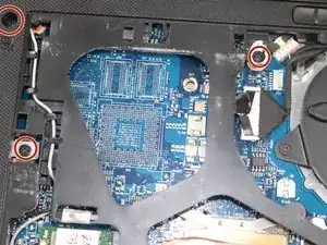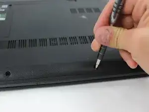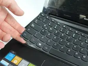 Подденьте пластиковым инструментом для раскрытия между клавиатурой и основанием ноутбука.