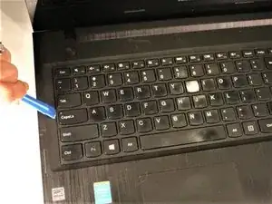 Немного приподнимите нижнюю часть клавиатуры, чтобы получить доступ к шлейфу клавиатуры.