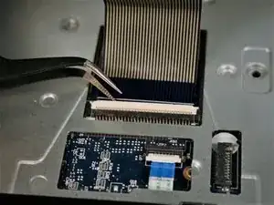 С помощью пинцета поднимите зажим, чтобы отсоединить шлейф клавиатуры.