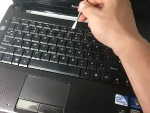 Используйте лопатку, чтобы поддеть верхнюю часть клавиатуры.
