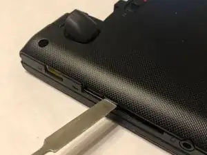 Используйте длинную металлическую лопаточку, чтобы поддеть и раскрыть нижнюю часть корпуса ноутбука.