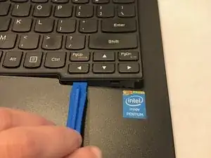 Используйте пластиковый инструмент для вскрытия, чтобы поддеть клавиатуру.