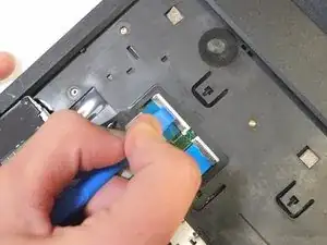 Используйте пластиковую лопатку, чтобы приподнять обе защелки ZIF. Как только зажим отпущен, осторожно потяните шлейф от материнской платы.