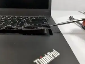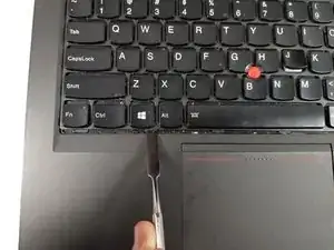 Используйте металлическую лопатку, чтобы толкнуть клавиатурную плату вперед к дисплею.