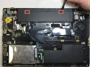 Удалите аккумулятор, нажав на две скользящие кнопки рядом с аккумулятором.