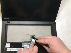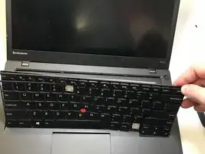 Поднимите клавиатуру и переверните её, открывая соединение с материнской платой.