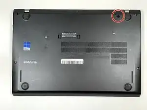 Ослабьте винт на задней стороне ноутбука, который удерживает клавиатуру, с помощью отвертки Phillips #000.