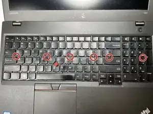 Используя крестовую отвертку #0, удалите шесть винтов 3.5 мм, которые крепят клавиатуру к ноутбуку.