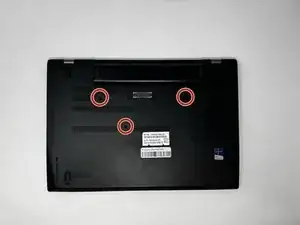 Ослабьте три зафиксированных винта на нижней части ноутбука крестовой отвёрткой Phillips #0.
