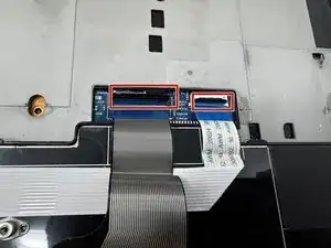 Поднимите вверх два чёрных шарнира и аккуратно отсоедините детали от компьютера.