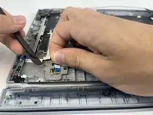 Проследите ленту-кабель, идущую от левого динамика к материнской плате.