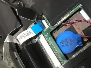 С помощью поддевателя поднимите черный зажим выше синего шлейфа, теперь вы сможете вытащить провода и полностью удалить клавиатуру.