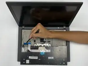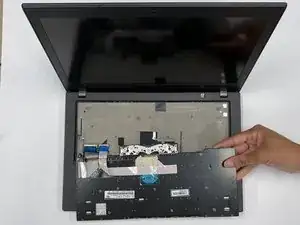 Сдвиньте клавиатуру к экрану Lenovo ThinkPad X280 и поднимите передний край вручную.