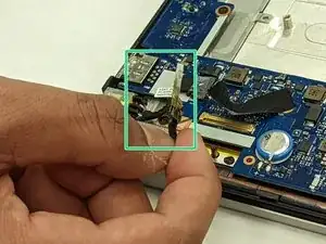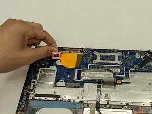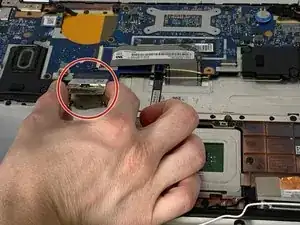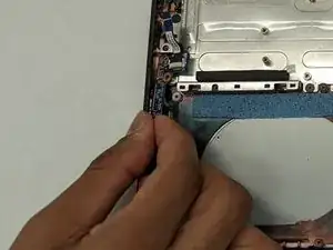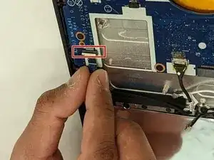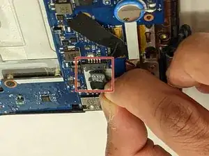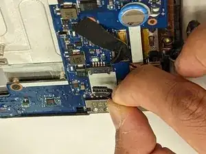 С помощью ногтя или тонкого медиатора подденьте разъём вверх, чтобы отсоединить его от материнской платы.