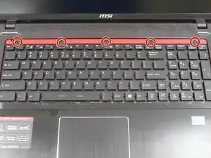 Отверните пять винтов, расположенных в верхней части клавиатуры.