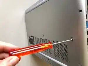 Вставьте небольшую отвертку в отверстия, из которых были удалены винты на предыдущем шаге, чтобы отсоединить клавиатуру.