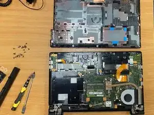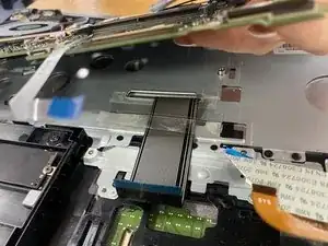 Единственная сложность при замене заключается в том, что лента клавиатуры приклеена, и её нельзя легко отсоединить без частичного демонтажа материнской платы.