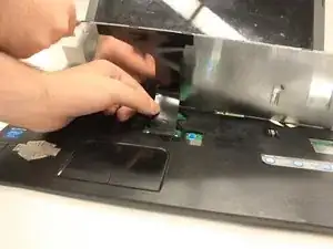 После того как клавиатура будет частично выведена из ноутбука, отсоедините её от устройства, вынув язычок, соединяющий клавиатуру с материнской платой.