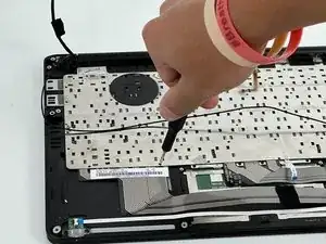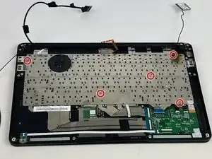 С помощью отвертки T5 Torx выкрутите пятьдесят пять винтов 3.4 мм, крепящих клавиатуру.