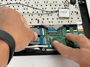 Поднимите чёрные защёлки вверх, чтобы разблокировать три ZIF-разъёма, используя инструмент для вскрытия.