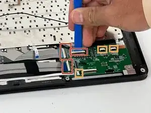 Поднимите белые защёлки вверх, чтобы разблокировать три ZIF-разъёма, используя инструмент для вскрытия.