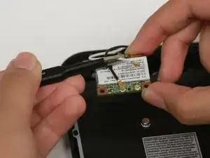Повторите шаг, чтобы снять чёрный провод и полностью отсоединить Wi‑Fi карту.