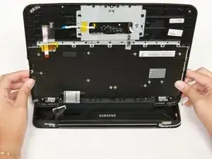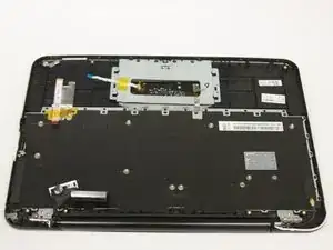 Оттяните клавиатуру и трекпад от себя, чтобы отсоединить их от центральной части корпуса хромбука.