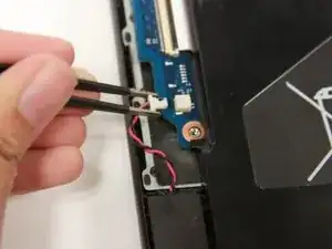 Осторожно приподнимите и выньте динамик из Chromebook.