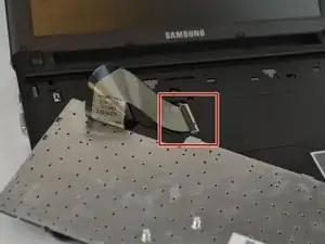 Используя металлическую лопатку и вашу ведущую руку, аккуратно отделите клавиатуру от корпуса компьютера.