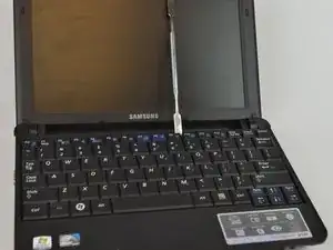 Переверните компьютер и откройте переднюю крышку так, чтобы экран смотрел на вас.