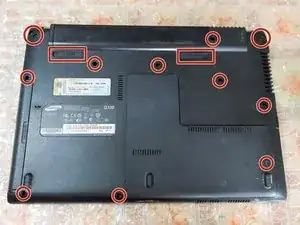 Вытащите батарею и маленькую панель, чтобы открыть доступ к дополнительным винтам.